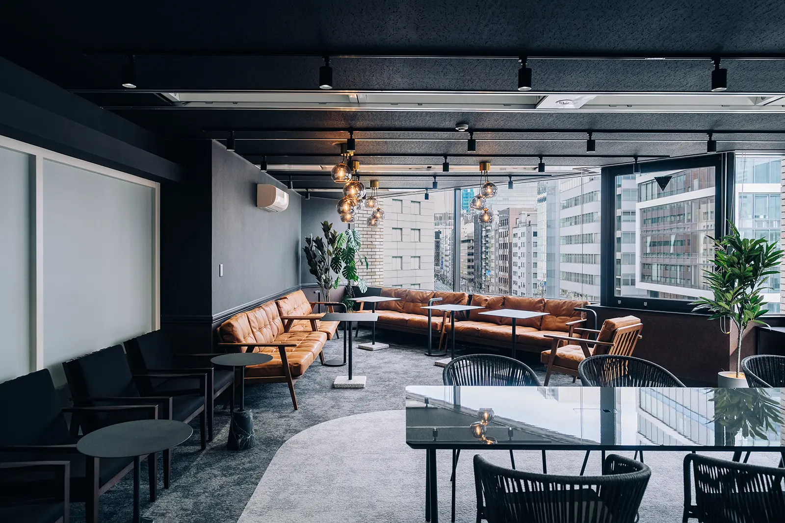 オープンエリアは、受付、フリーアドレスオフィス、カフェスペースの仕切りをなくした開放的な空間です。出張時のビジネス拠点やテレワークなどにも気軽にご利用いただけます。