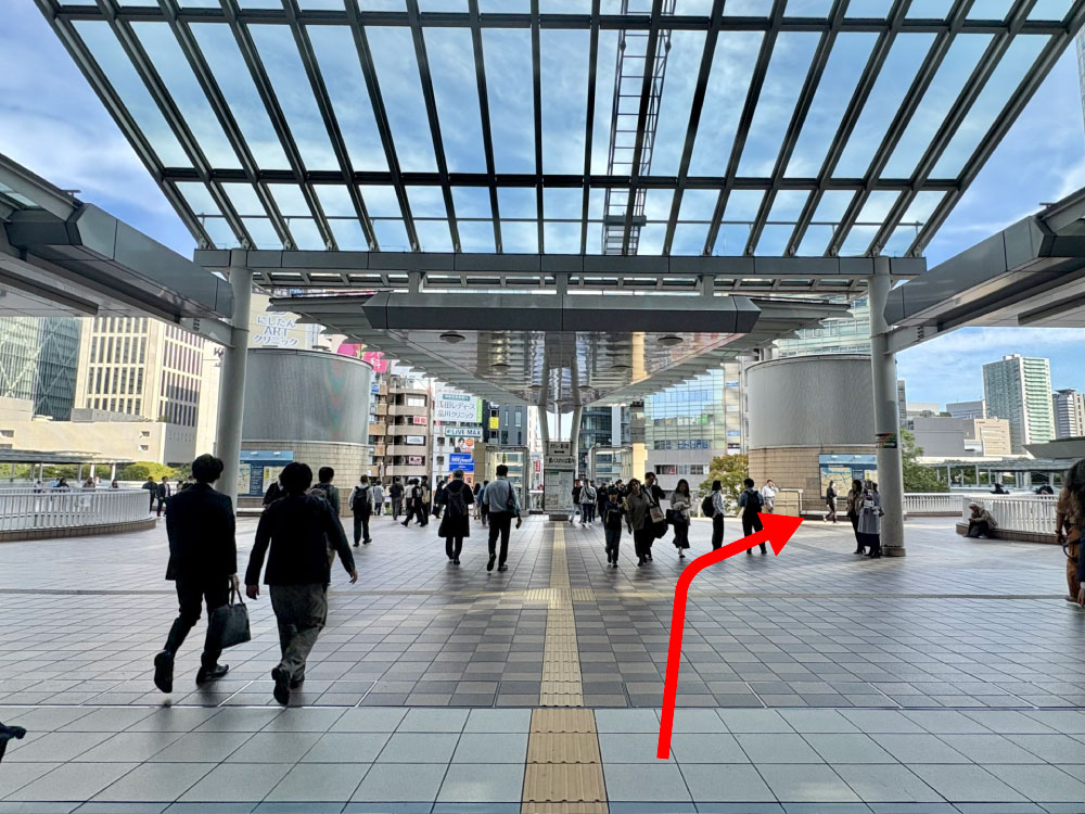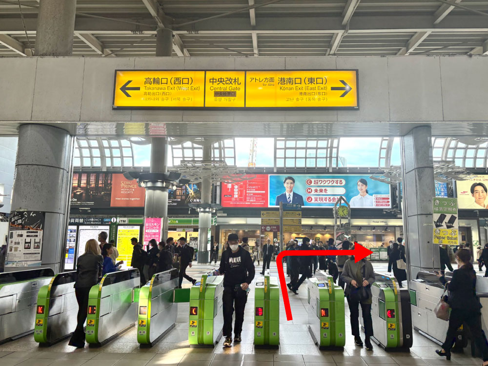 • 品川駅中央改札を出て右へ曲がり、港南口へ向かってください。