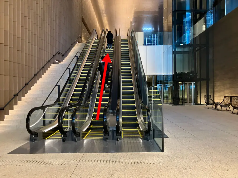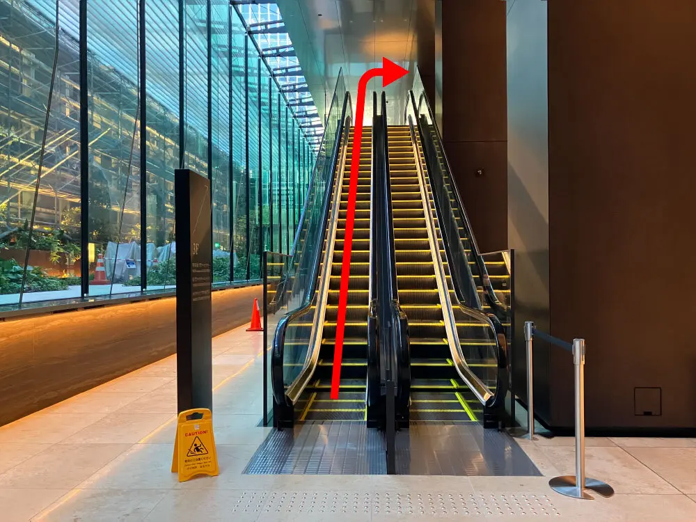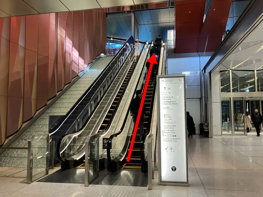 「A2a」出口へ向かい、1つ目のエスカレーターをのぼります。