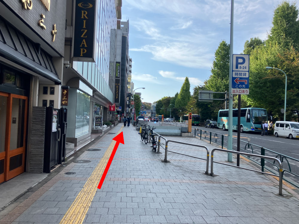 上野恩賜公園野外ステージを右手に、道路挟んで正面に「&HERE上野」があります。