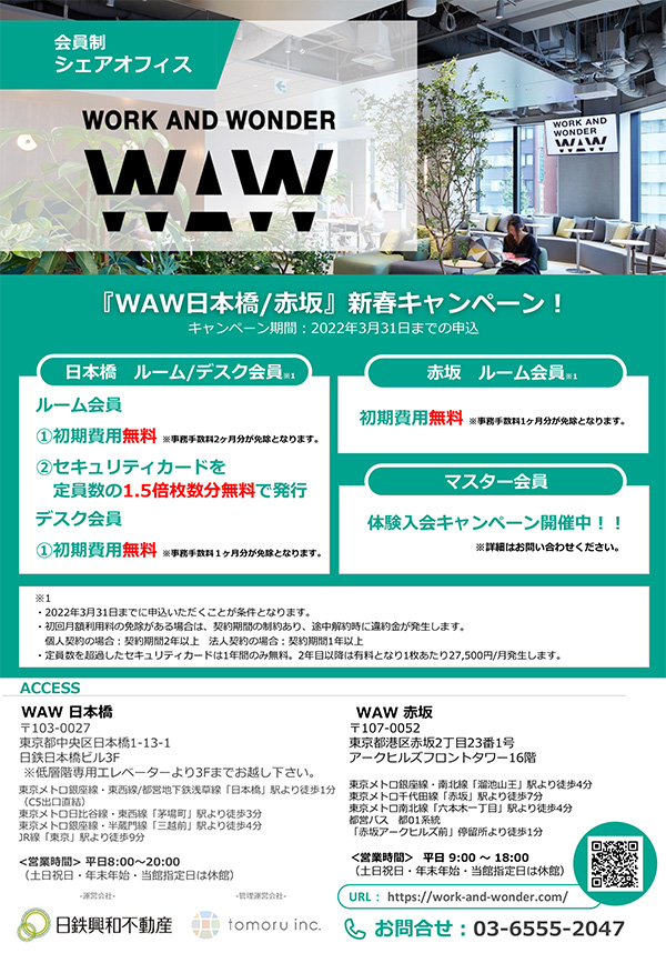 「WAW日本橋/赤坂」では新春キャンペーン実施中です!