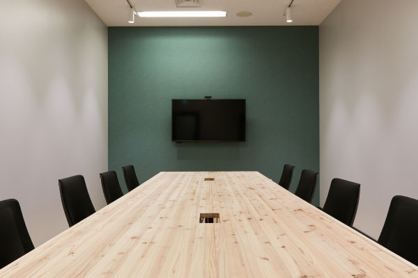 「キイノクス オフィスプロジェクト」に賛同し、自然と会議が盛り上がるような、木を活かした温かみのある空間に仕上げた8名様用会議室。